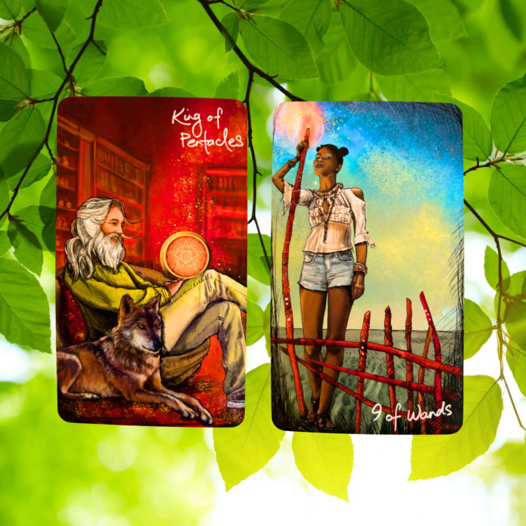 The cards this week are the King of Pentacles and the Nine of Wands from the Light Seer’s Tarot. Click the link below to see how these cards might appear in your life in the coming days.