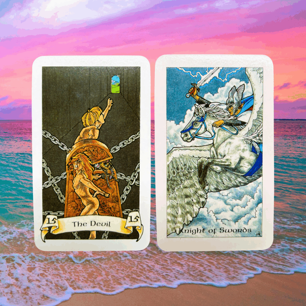 The cards this week are The Devil and the Knight of Swords from Robin Wood Tarot. Click the link below and discover the influence they might have on your week ahead.